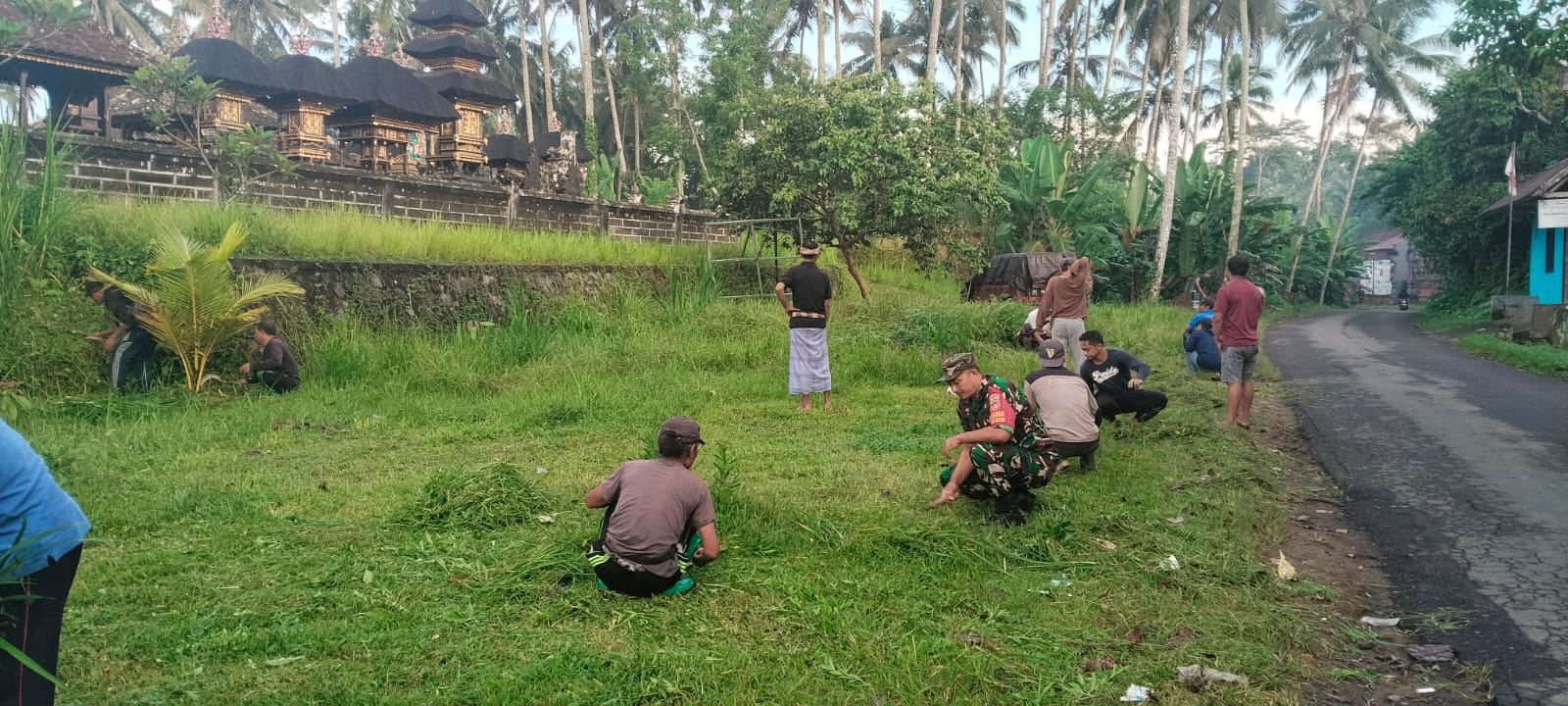 Peran aktif Babinsa Desa Tembuku Laksanakan Gotong Royong bersama Warga Pembersihan Sepanjang Jalan Banjar Penida Kaja