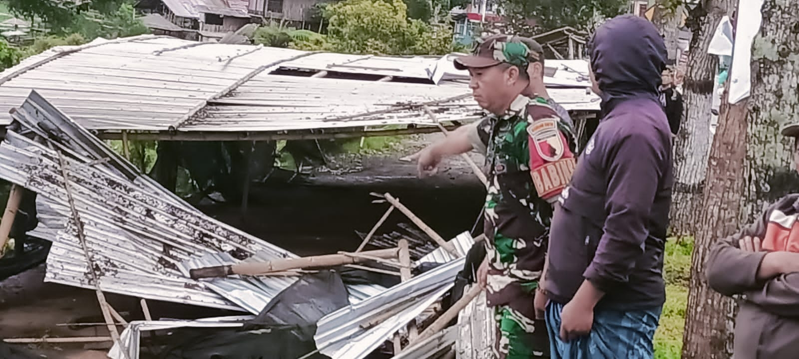Hujan Deras Disertai Angin Kencang di Tutur, Tiang Parkiran SMKN Tutur Terbang dan Menembus Rumah Warga, dengan Sigap Babinsa Langsung Datangi Lokasi